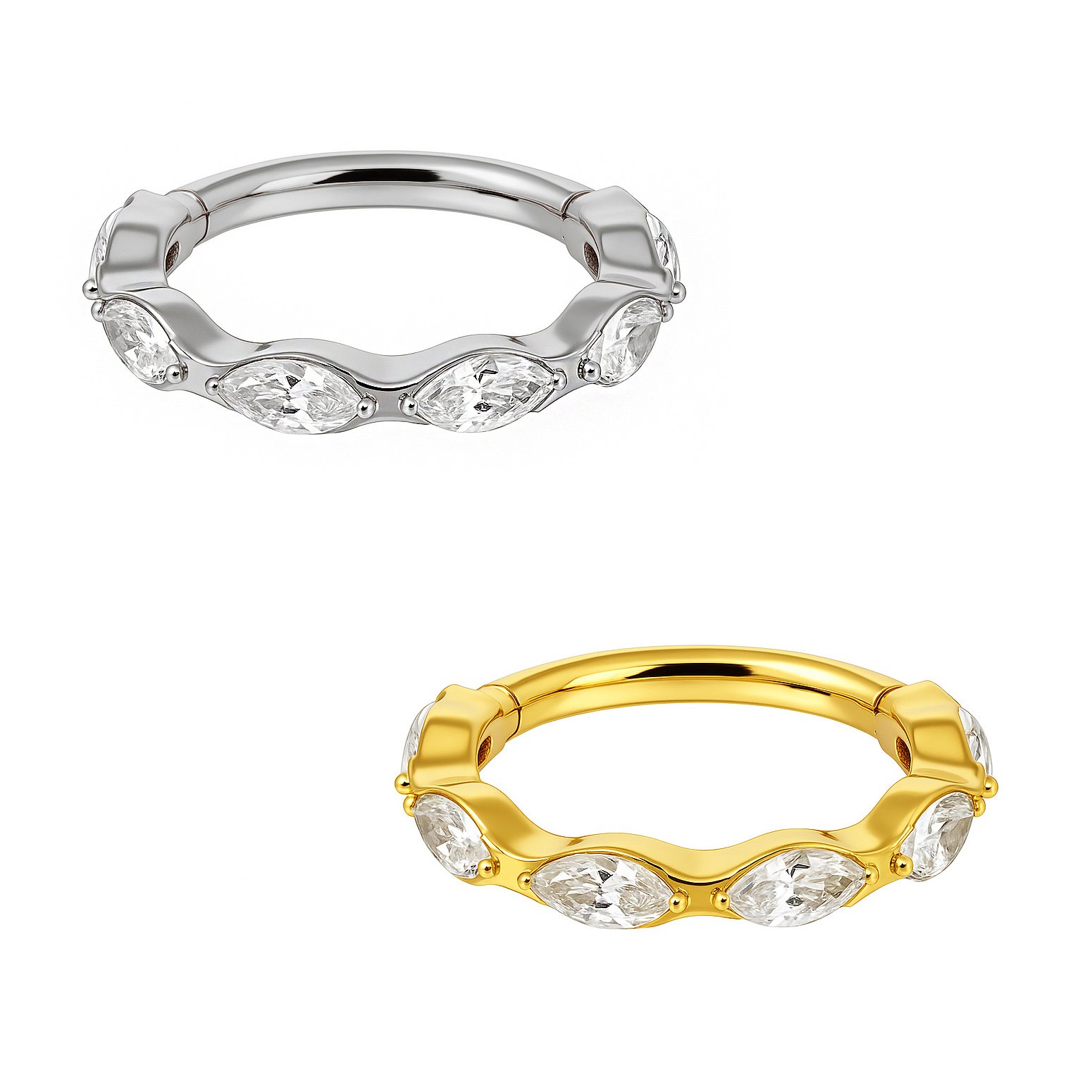 Anello Con Zirconi Punta Acuta Di Titanio ASTM F136
