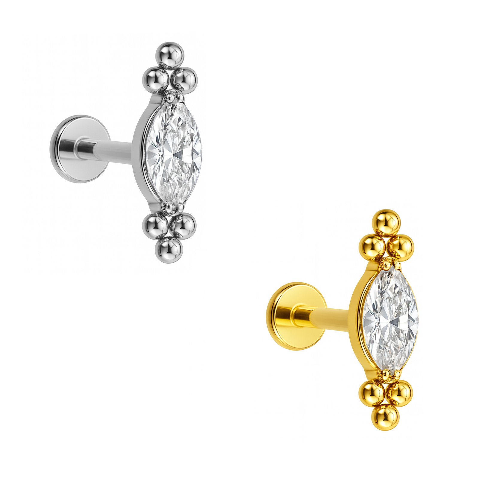 Labret Navete Con 6 Beads di Titanio ASTM F136