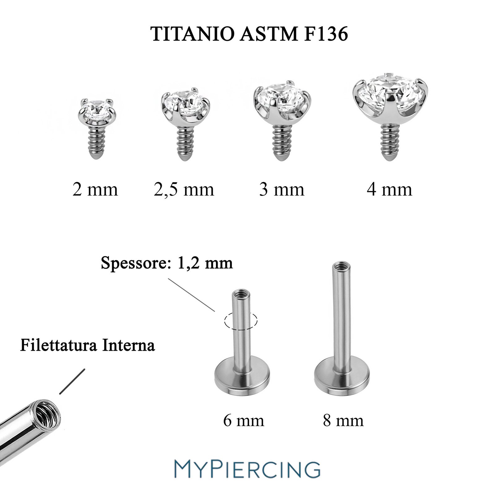 - Diametro della pietra: 2 / 2,5 / 3 / 4 mm